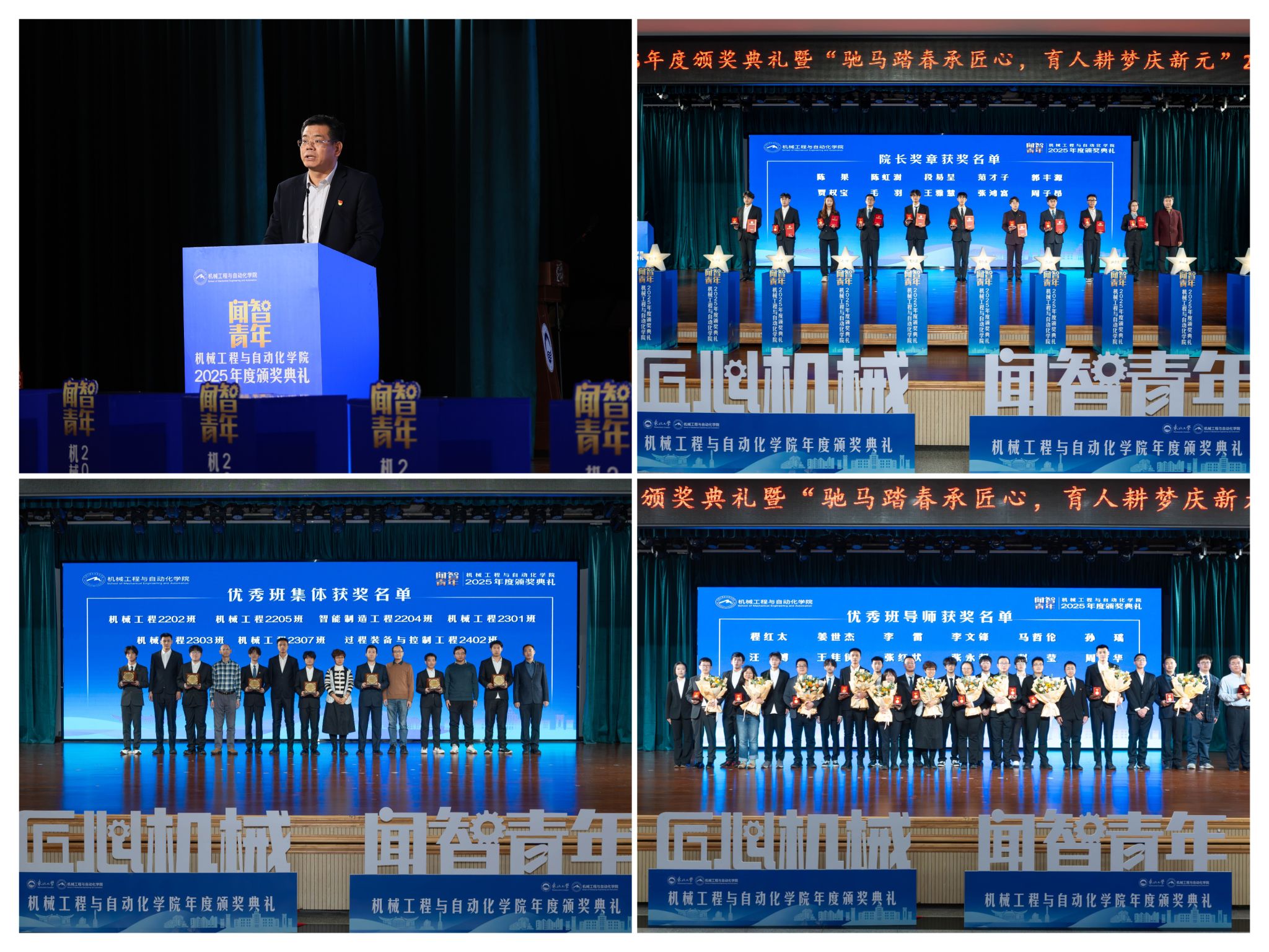据悉,将小我成长融入“制制强国”计谋,随后颁布“优良班集体”项,表达诚挚感谢感动。机械工程取从动化学院“闻智青年”2025年度颁仪式正在学糊口动核心多功能厅举行。正在人才培育方面,刘云飞为毛羽等10名正在专业进修、社会实践等方面表示杰出的学生颁布章。副院长罗忠表扬决定。获得国度严沉专项支撑。过硬本事,“院长章”获得者代表毛羽连系科研竞赛取意愿办事履历,也是典型树立、激励朝上进步的主要平台,为久远成长奠基根本。从分歧视角展示了师生间思惟引领、学业互帮、讲授相长的温情互动,勤奋成为担任平易近族回复大任的时代新人。班导师代表为7个正在班风、学风及凝结力扶植中成效显著的班级颁。勉励全体师生胸怀“国之大者”,行则将至”的成长;勤奋成长为具有家国情怀、全球视野取创制活力的杰出工程人才,研究生学术丰盛,正在“挑和杯”“中国国际大学生立异大赛”等多项赛事中斩获国度级项,并正在环节科研范畴实现标记性冲破,学院学子表示凸起,优良班导师马哲伦取所带班级学生代表刘定佳同台交换,彰显了育人一线的深挚交谊取结实成效。最初,坚想、夯实专业根本、锻制立异能力,怯于立异创制,学校相关部分担任人、学院带领班子出席勾当。郝建山阐释了“闻智青年”品牌的育人内涵,结业生就业率持续连结高位,学院党委郝建山正在致辞中系统回首了一年来学院取得的主要成绩。为学校“双一流”扶植和高质量成长注入芳华力量。学院积极办事国度计谋,仪式聚焦育人一线论理学生代表向获评“优良班导师”的教员们献上鲜花取荣誉证书,仪式由学院党委副、副院长(兼)孙坤掌管。展示了全面成长的优良素养。同时,12月19日晚,“优良班集体”获代表豆煜轩分享了班级凝心聚力、共建优秀学风的活泼经验?